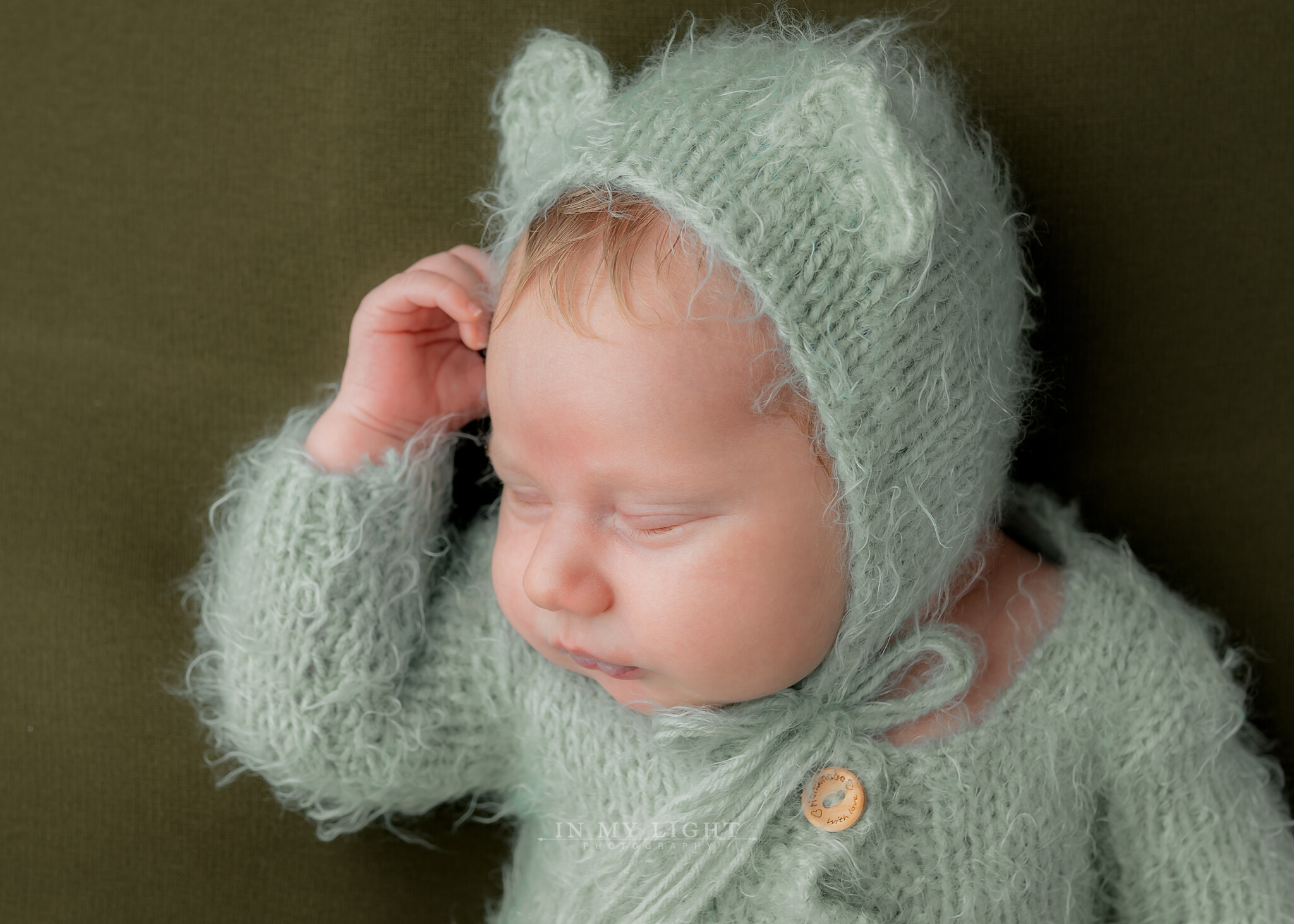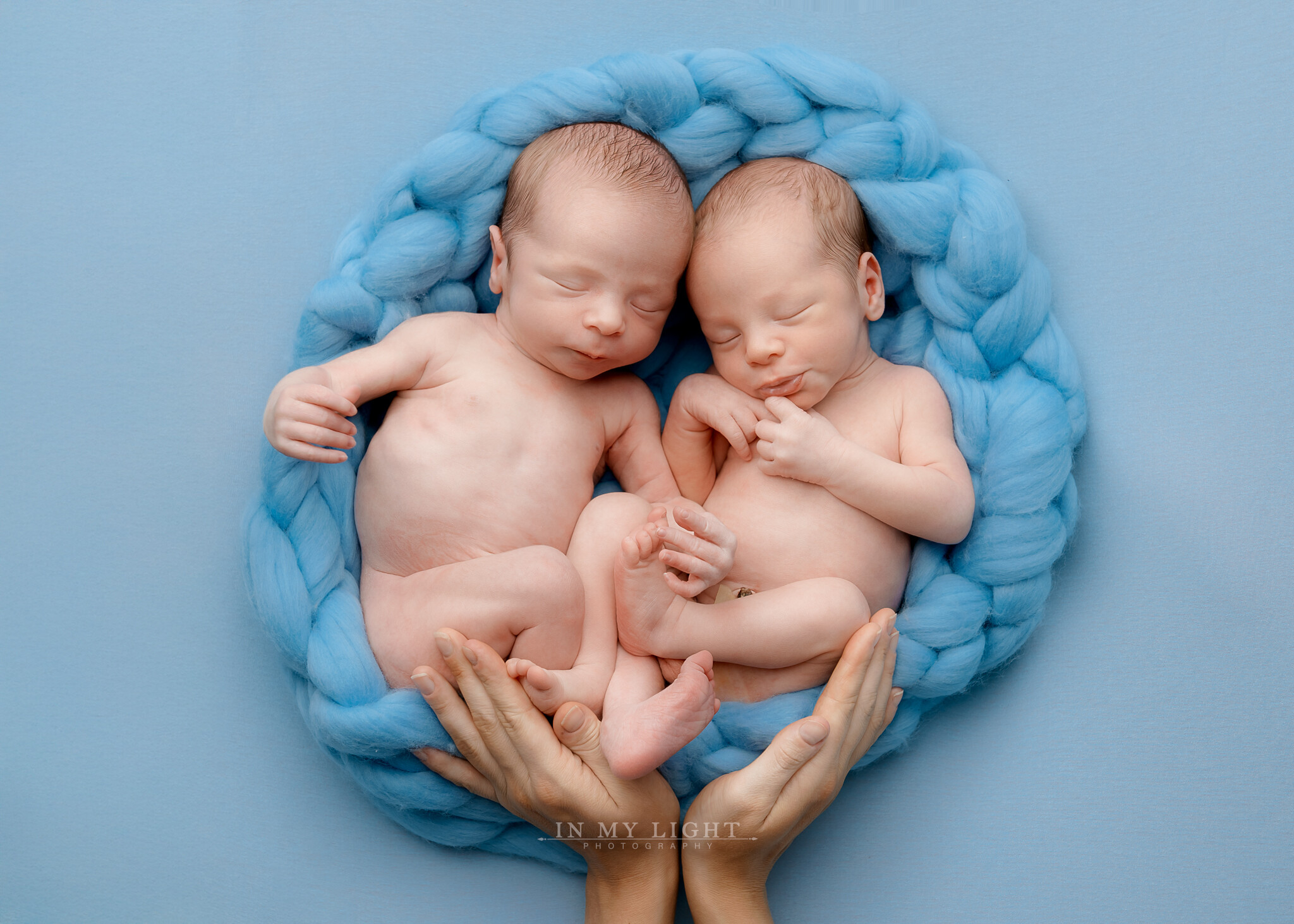 Sikkerhet kommer alltid først. Jeg har deltatt på tre nyfødtfotograferingskurs, i tillegg til flere nettkurs, for å lære riktig og trygg posisjonering. Alle positurer jeg bruker er naturlige og trygge for babyen, og de ligner ofte på stillingen barnet hadde i mors mage. Foreldre får gjerne hjelpe til under fotograferingen for ekstra trygghet, men jeg håndterer alltid barnet med største forsiktighet.